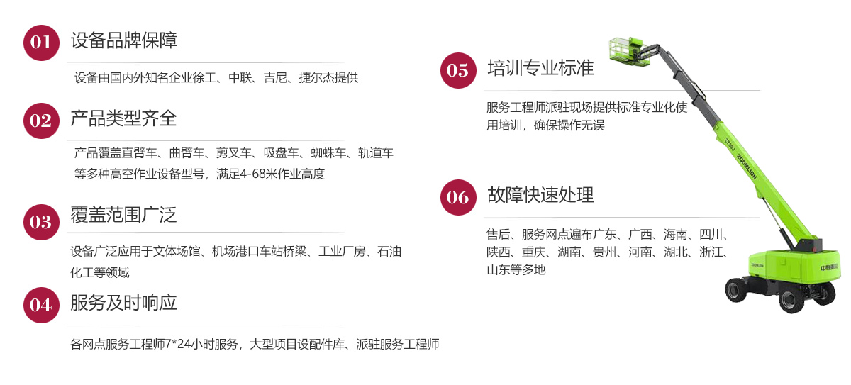 公司在發(fā)展歷程中堅(jiān)定實(shí)行大客戶戰(zhàn)略,致力于以優(yōu)質(zhì)的服務(wù)打造公司的品牌和核心競爭力,現(xiàn)已在廣東、廣西、海南、四川、陜西、湖南、重慶、河南、湖北、貴州等多地建立了完善的售后服務(wù)網(wǎng)點(diǎn),24小時為客戶排憂解難。今后我們將結(jié)合市場需求,不斷創(chuàng)新業(yè)務(wù)模式、優(yōu)化設(shè)備結(jié)構(gòu)、加強(qiáng)運(yùn)營管理、擴(kuò)大服務(wù)網(wǎng)點(diǎn)、提升服務(wù)水平,形成以設(shè)備租賃、銷售、二手設(shè)備交易等全方位一站式的全面服務(wù)體系,用高標(biāo)準(zhǔn)高質(zhì)量的服務(wù)讓客戶在和公司合作的過程中實(shí)實(shí)在在感受到省心、省力、省錢的體驗(yàn),在客戶心目中樹立“家鋒”的品牌形象。